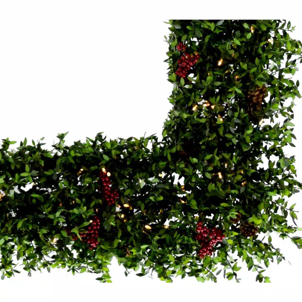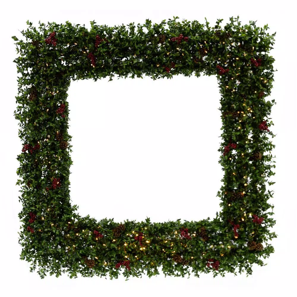 Spruce up your holiday decor with an Evergreen Berry artificial wreath from Fraser Hill Farm. Whether you deck the halls indoors or outdoors, invest in a quality wreath that will last year after year. This wreath features leafy branches with festive pinecones and berries scattered throughout. Its pre-strung with battery-operated LED string lights that add a sparkle and holiday charm to the overall display. A discrete battery box is hidden within the branches and provides cordless light operation with the freedom to hang the wreath wherever you like. With 1440 tips there’s plenty of room for you to customize the look with bows, ornaments and other decor. The Evergreen Berry is known for its realistic branches, rustic charm and decorative accents to complete the look. Hang this wreath on your door and greet each guest with holiday cheer that will last from 1 season to the next.