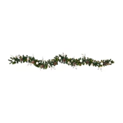 Complete your holiday decor scheme with this artificial winter garland, intricately designed from realistic looking pine foliage in a palette of seasonal evergreens and accented throughout with faux pinecones that look incredibly lifelike and decorative ornaments – all to help evoke the Christmas spirit. Arriving pre-strung with 50 clear LED lights (battery operated) to eliminate tangles, it will effortlessly illuminate any space it inhabits. Great for showcasing over a mantle, bare counter, or stair banister, this impressive 9 ft. L artificial garland will undoubtedly complete a traditional holiday setting for years to come. Silk plants are manufactured using synthetic materials, such as polyester material or plastic, and are well designed and constructed to be life-like in appearance. This item will need to be re-shaped when removed from the secure box to allow it to reach its fullest size. Your artificial plant will look beautiful for years to come; simply wipe clean with a soft dry cloth when needed.