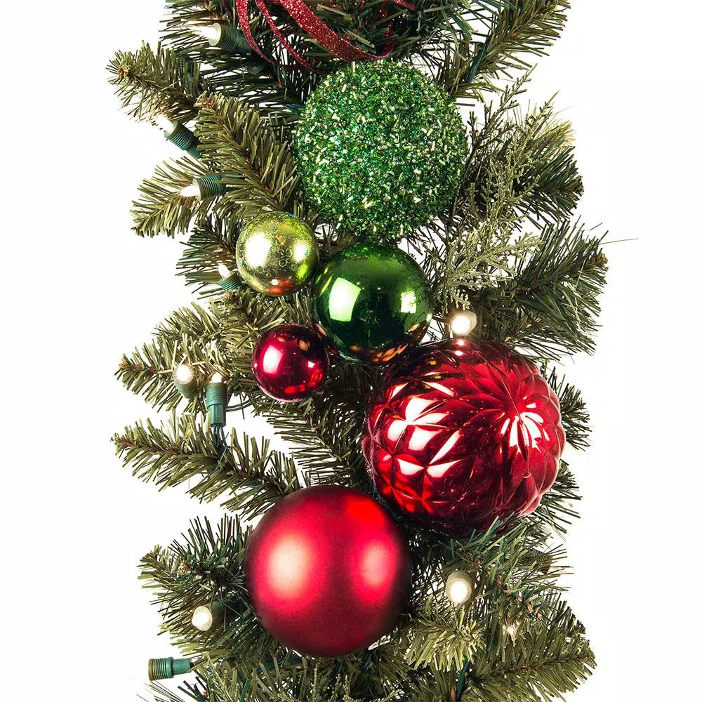Christmas garlands are a must have if you want to impress your guests during the holidays, and this one of a kind garland is sure to meet those expectations. The Festive Holiday garland is a pre-lit, remote-controlled, battery-operated Christmas garland with 100 LED mini lights. 9 ft. from tip to tip, the Festive Holiday garland features a handcrafted design complete with festive red and green ornaments to give a modern touch on traditional Christmas garland. The life-like artificial garland is perfect either indoors or outdoors, whether you want to hang it on your fireplace mantle, or display it above your front door. Either way, be sure to complete the look with a matching wreath.
