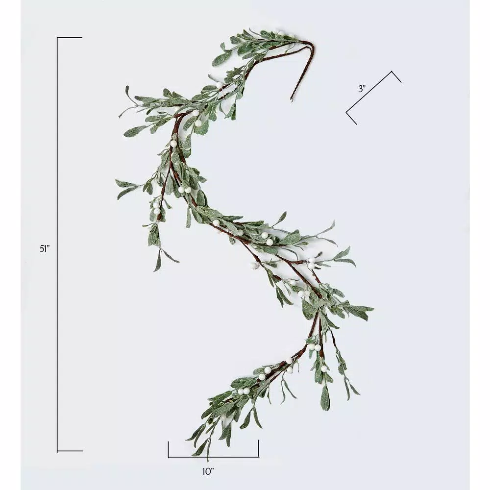 Get into the holiday mood with this beautiful mistletoe garland. It is on a bendable vine and coated with festive glitter. It will look great on a mantel or stairway.