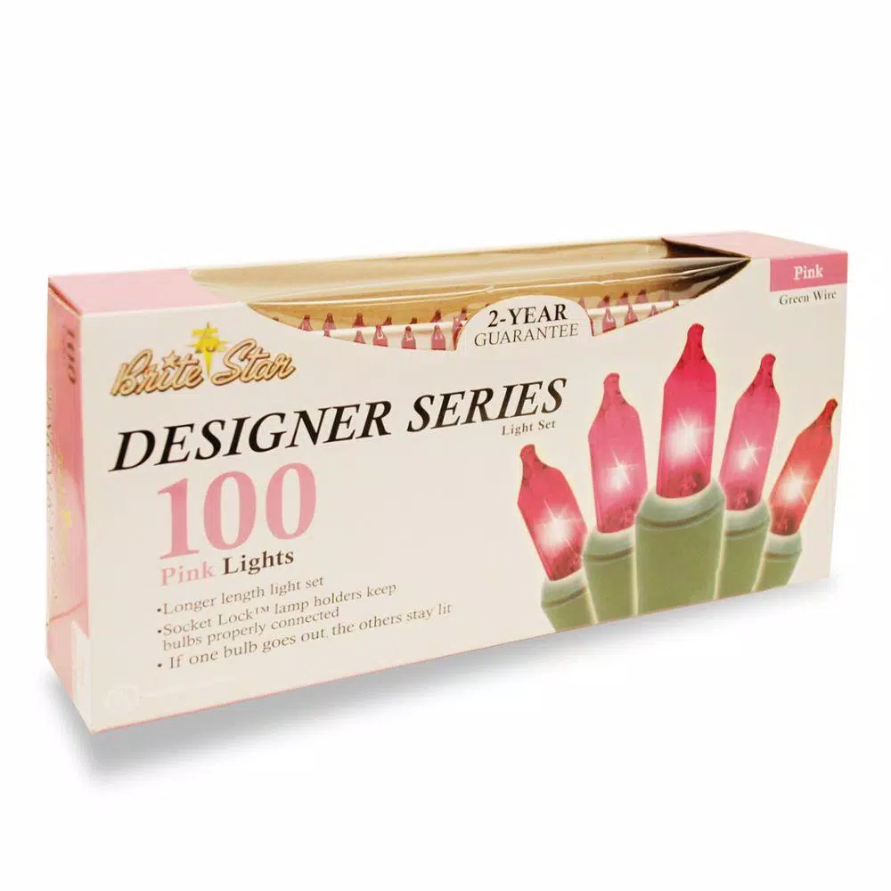 Each strand has 100 incandescent mini-bulbs on green wire to blend in with your Christmas tree or landscaping. 36.75 ft. strand includes 18 in. lead cord, 4.25 in. spacing between bulbs and 3.5 in. end cord. Each string has end-to-end connector for adding on light sets. Replacement bulbs and fuses included. Suitable for indoor and outdoor use, UL-listed, box of 2.