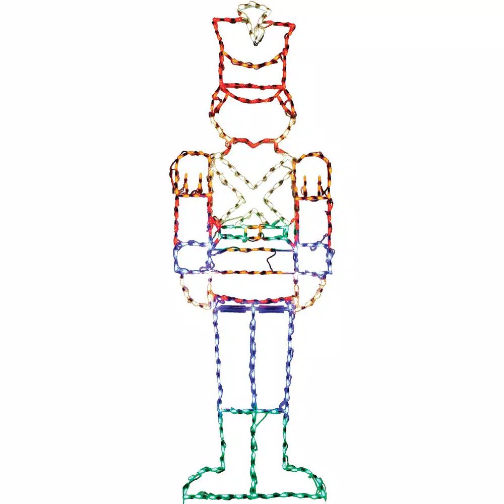 Add a festive touch to your Christmas light show with this 6 ft. Toy Soldier Light from Fraser Hill Farm. Designed with 272 sparkling lights, this incredible Toy Soldier light will make a cheerful addition to your holiday decor. Our collection of dazzling Christmas light shapes will help you create a delightful holiday display everyone will love. Collect them all. Stake them on the lawn or mount them to the house for a stunning decoration thats both merry and bright (mounting hardware NOT included). These weather-resistant shapes feature bright, faceted LED lights mounted on powder-coated metal frames to provide many years of enjoyment. For unique decor that celebrates the spirit of Christmas, count on quality products from Fraser Hill Farm.