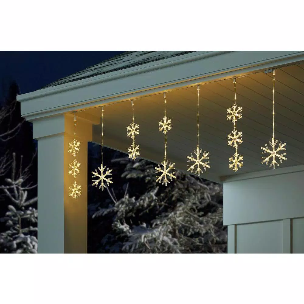 Bring sparkle and shine to your holidays with the Home Accents Holiday 64 in. 150-Light Warm White Micro Dot LED Snowflake Icicle Light. Pre-lit with 150 vibrant LED Micro Dot lights, this festive snowflake icicle light creates a wonderful glow through this holiday season. Rated for both indoor and outdoor use, it brings warm illumination to your patio, garden, door and other areas.