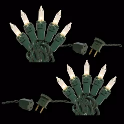 Bring a soft glow of illumination to your home decor with electric mini string lights. Featuring 100 slender lights on 2 green cords, these strands of steady lights can be strung on trees, shrubs, patio umbrellas, roof tops and mantels for a lovely radiant accent.