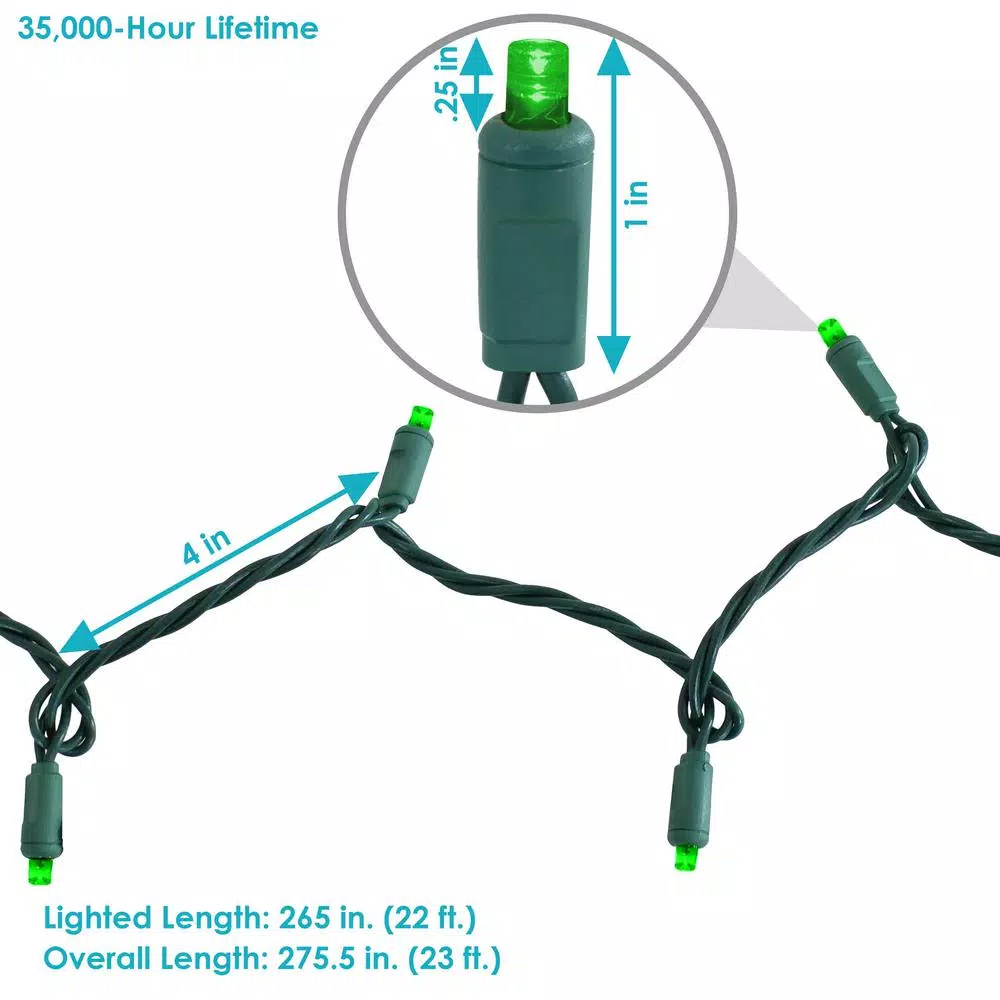 - UL Listed for indoor/outdoor use: lights feature a PVC/polypropylene plastic construction and 22-Gauge green wire designed to last through the season with resistance to fading, weather, chipping and peeling, lights are molded permanently to the socket making them more water-resistant, tamper-resistant and safer to use