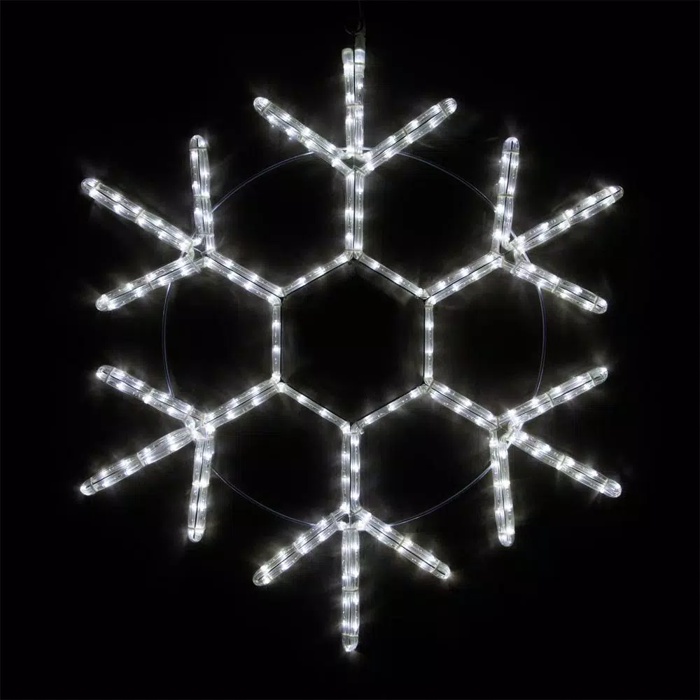 Let it snow over your holiday light displays this season with this elegant 18 point lighted snowflake motif from Wintergreen Lighting. Its long-lasting, energy efficient LED mini lights are encased in UV resistant PVC tubing and strapped to a sturdy metal frame, so this star will shine brightly through even the darkest nights. And its long 5-ft. lead cord is ideal for hanging display. Mix sizes and colors for a snowflake display that will delight everyone who sees it.