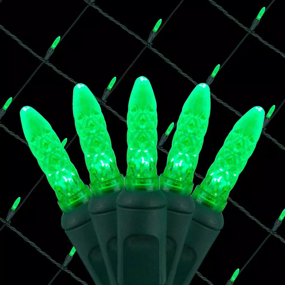 - Set of 100 green non-twinkle LED mini lights on a 4 ft. x 6 ft. green wire net, perfect for decorating bushes and shrubs