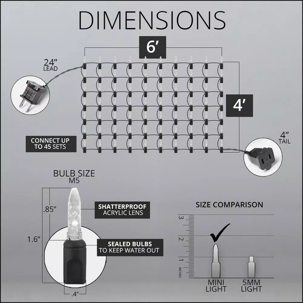- Connect up to 45 net light sets end to end for 1,080 sq. ft. of total coverage on one plug