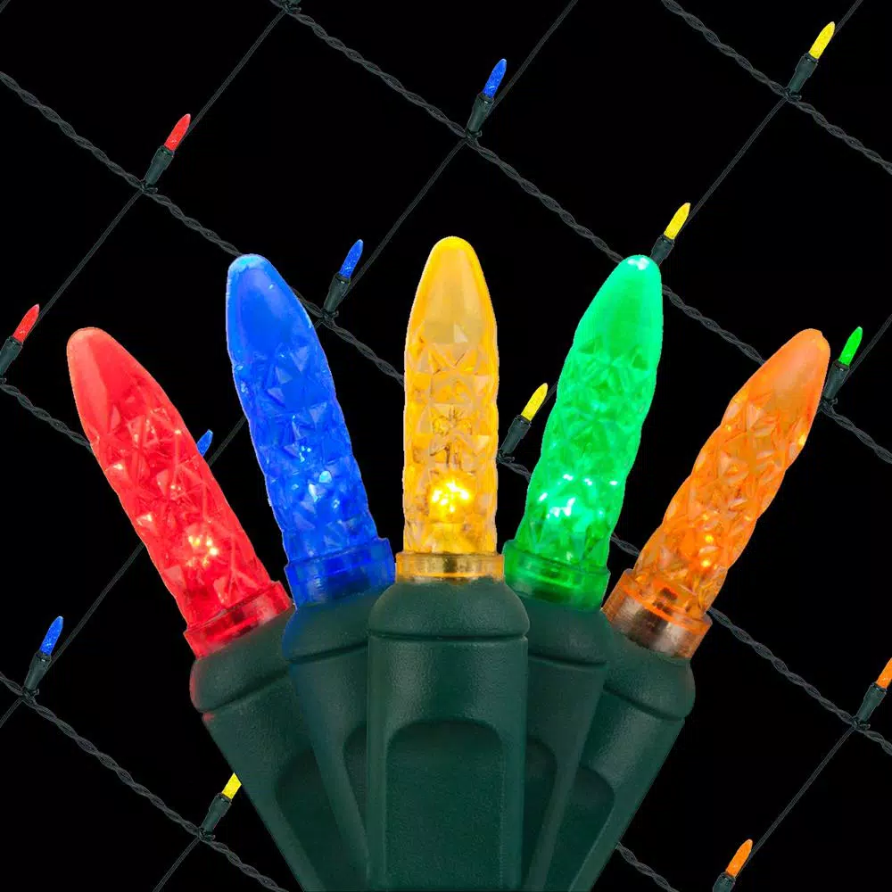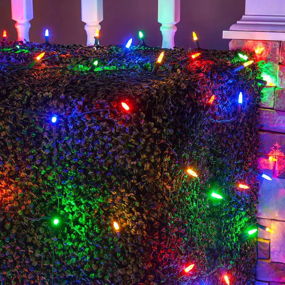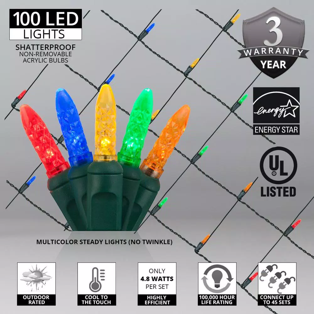 - Set of 100 multi color non-twinkle LED mini lights on a 4 ft. x 6 ft. green wire net, perfect for decorating bushes and shrubs
