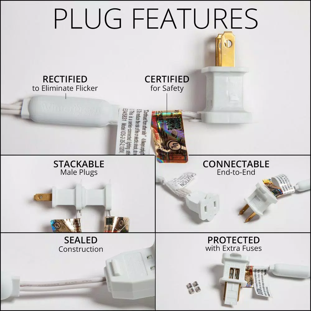 - Connect up to 44 sets end to end for over 300 ft. total coverage from one plug