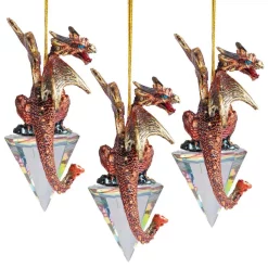 Celebrating 25-years of exclusive designs for Design Toscano, artist Liam Manchester decided that his diamond anniversary called for a Diamond Dragon so our limited-edition holiday dragon ornament arrives on his own larger-than-life, crystal glass diamond. Expertly hand painted in Medieval metallic tones, the Gothic dragon demon shines in festive colors, featuring a golden string at the top for easy hanging. Available only from Design Toscano, this unique gargoyle collectible makes a standout Christmas tree decoration, an exotic stocking stuffer, a charming package tie-on or a creative addition to your year-round dragon collection. Each: 2 in. W x 2 in. D x 3-1/2 in. H.