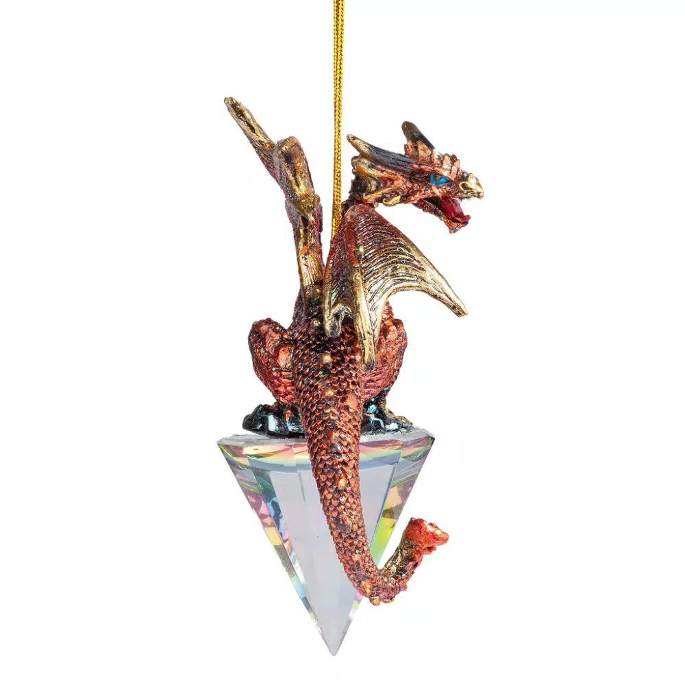 Celebrating 25-years of exclusive designs for Design Toscano, artist Liam Manchester decided that his diamond anniversary called for a Diamond Dragon so our limited-edition holiday dragon ornament arrives on his own larger-than-life, crystal glass diamond. Expertly hand painted in Medieval metallic tones, the Gothic dragon demon shines in festive colors, featuring a golden string at the top for easy hanging. Available only from Design Toscano, this unique gargoyle collectible makes a standout Christmas tree decoration, an exotic stocking stuffer, a charming package tie-on or a creative addition to your year-round dragon collection. 2 in. W x 2 in. D x 3-1/2 in. H.