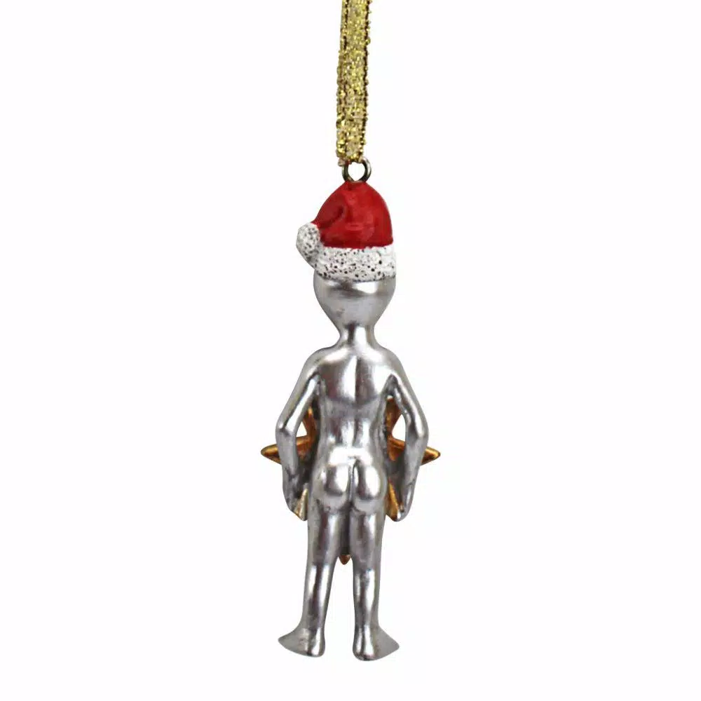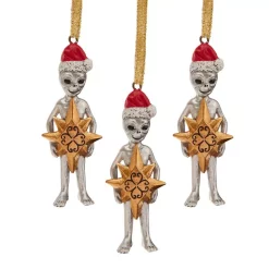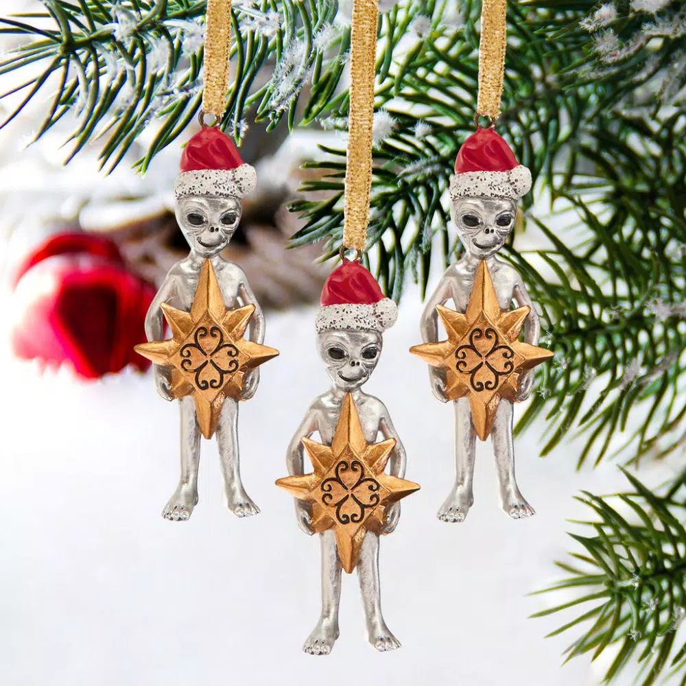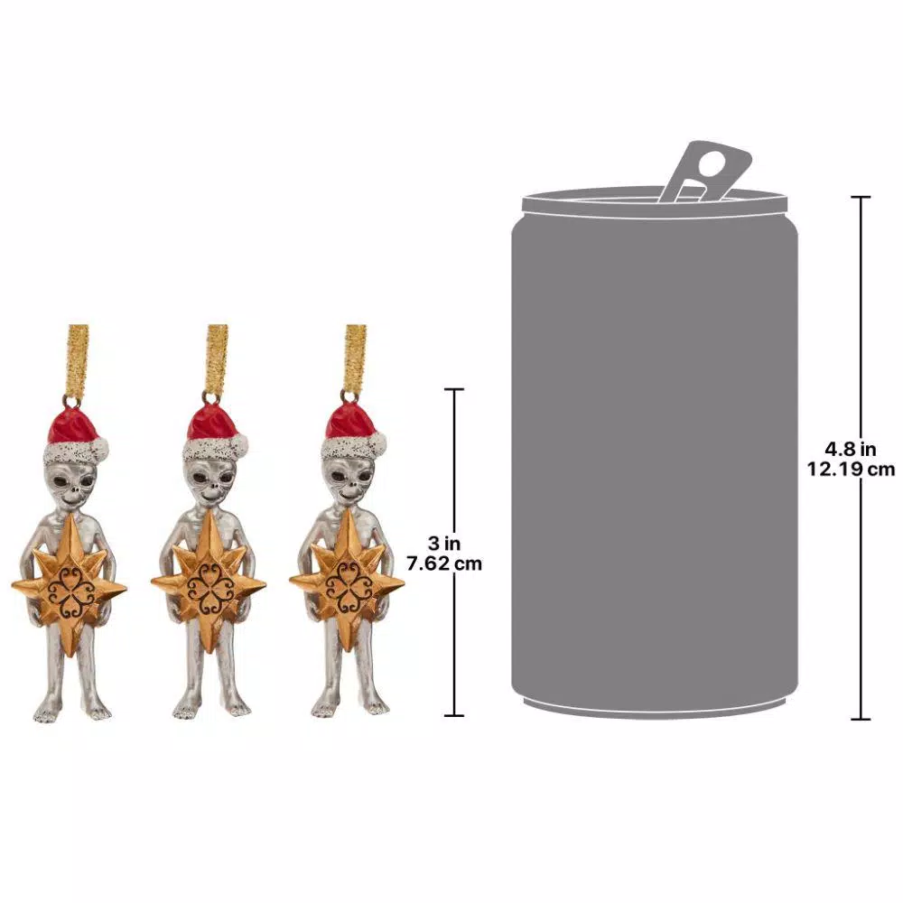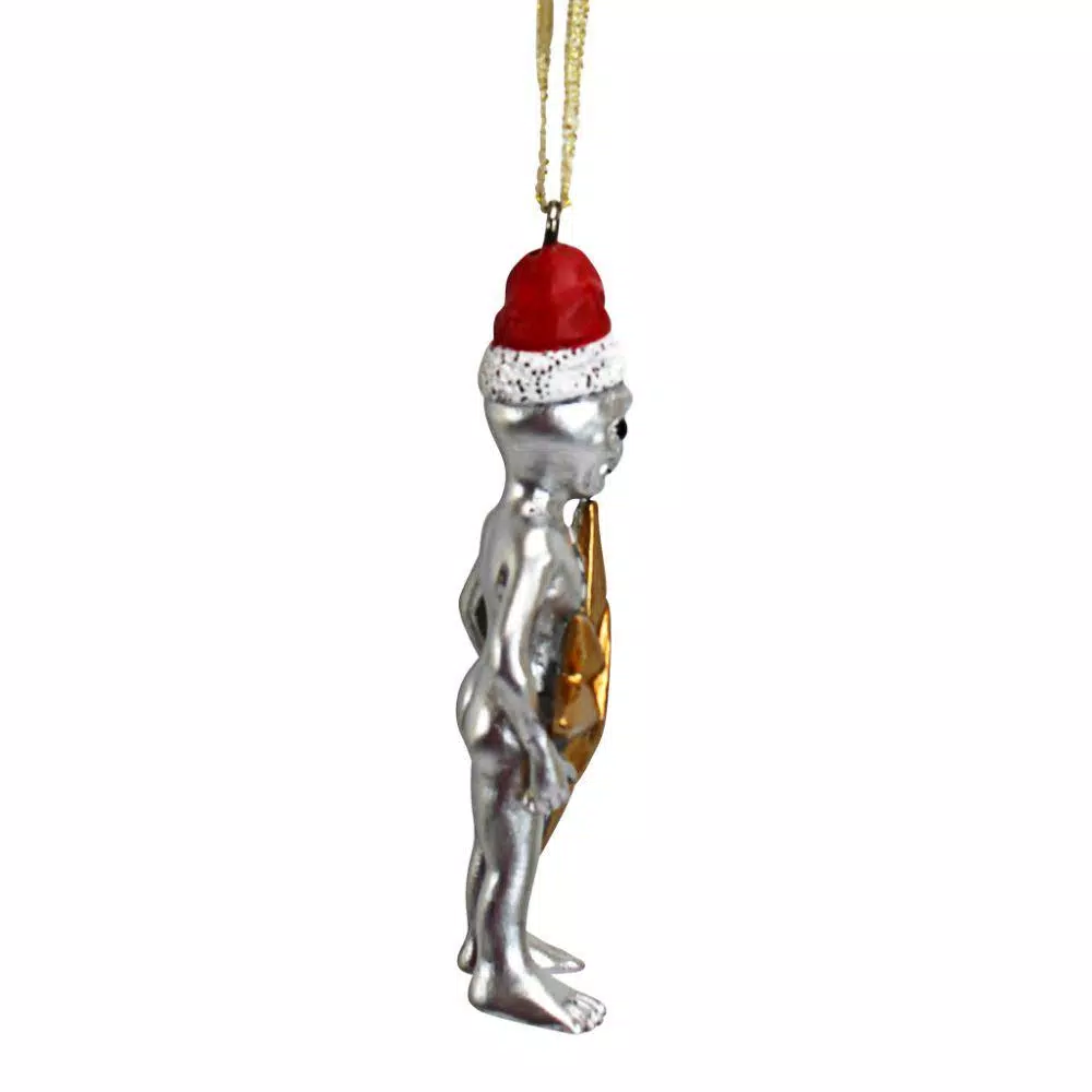 You’ll want to follow that star because even UFO aliens are wise enough to know that the good stuff is still found at the foot of the Christmas tree. We’ve transformed everyone’s favorite Roswell alien into a quirky 3-dimensional, extra-terrestrial holiday ornament that’s sculpted with details from traditional red Santa hat and sparkly gold star to mysteriously bulging eyes and foreign androgynous form. Our unique Design Toscano exclusive is cast in quality designer resin and fully hand painted as a one-of-a-kind holiday decoration and a truly teleporting, out-of-this-world gift. 1 in. W x 1/2 in. D x 3 in. H, 1 lb.