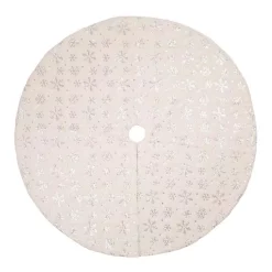 Treat your tree right with the final touch in a soft faux fur tree skirt. Adds the perfect layer for piling the presents on and protect floors. The crisp white faux fur creates the look of freshly fallen snow to give a lovely festive style. Warm fuzzy velvet provides an eye-catching base for the applique and embroidered designs.