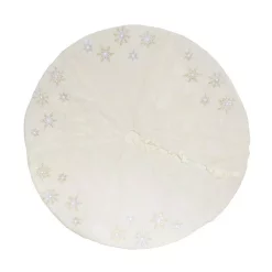 Sequin snowflakes sewing on a Soft Plush Furry background. Perfect soft touch Christmas gift, matching tree skirt and stocking available. Available in beautiful Christmas color Grey or White. 3 x AA batteries (not included), Light Up and Enjoy. Spot clean only.