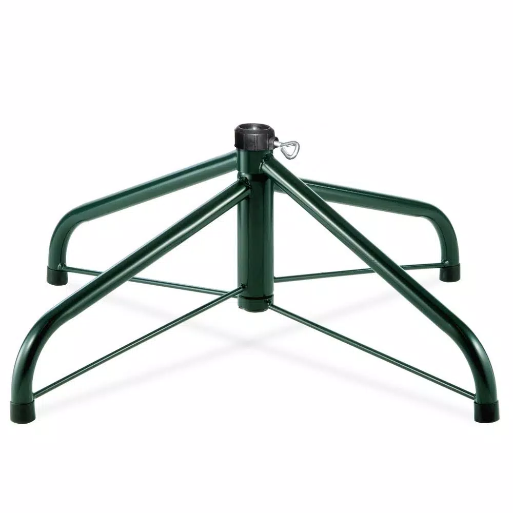 This folding metal tree stand is for use with 6.5 ft. tall to 8 ft. tall artificial trees with 1.25 in. Dia center pole. This stand features sturdy steel construction and folds flat for convenient storage. Included single thumb screw for securing stand to tree pole.