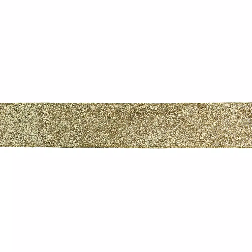 This gorgeous shimmering gold sparkling ribbon would be a great way to decorate your gifts and home for the holiday season. The wired ribbon will help everyday designs maintain their shape and beauty. Whether youβre a florist an event planner or crafter wired edge ribbon is a dream to work with. Add this ribbon to Christmas gifts wreaths or trees for sparkle and beauty. Features: Ribbon has a metallic glitter texture. Sewn wire edged ribbon allows you to bend and shape your creations to decorate with ease. Has a sparkle gold trim. Ribbon comes on (1) spools. Dimensions of each spool: 2.5 in. W x 16 yds. in length. Material(s): polyester.