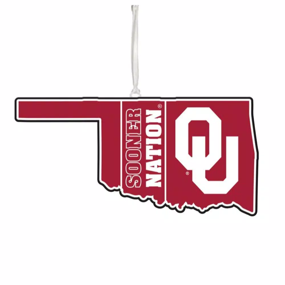 This Oklahoma ornament is made of wood and shaped like the hometown state. It is painted with the team logo and comes with a jute hanger. It’s a perfect Christmas gift.