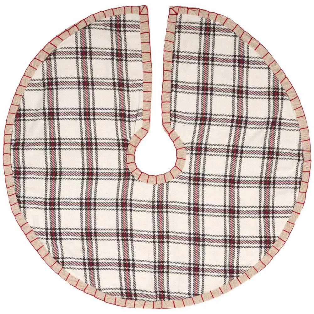 Go for an urban holiday look under the tree this year with the Amory Mini Tree Skirt. Ivory, brick red and black come together on a fresh plaid cotton. The skirt is trimmed by thick red whip stitching and reverses to solid khaki chambray.