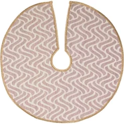 Go for a glamorous look this Christmas with the Magdalene Mini Tree Skirt. Featuring an elegant jacquard pattern in mauve and antique white with gold lurex showing through slightly for a shimmery appearance. The skirt is finished with a bronze sequin trim. Reverses to striped metallic cotton.