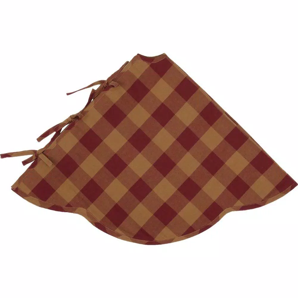 We extended our popular home decor line with holiday cheer in the Burgundy Check Scalloped Tree Skirt. Now you can add this classic Burgundy Check look beneath your tree. Features a cotton and jute outside shell with flannel lining and finished with country scalloping. Reverses to solid natural jute.