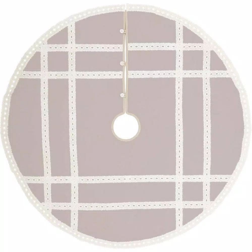 The Margot Tree Skirt is a statement of elegance for those who wish to pay homage to the timelessness of the Christmas Season. This tree skirt keeps the tradition of Christmas decor stored in grandmothers attic and taken out for only the most special occasions. An ornate diamond cut lace adorns soft felt in this enduring piece. Reverses to creme chambray. Made with cotton and felt for a luxurious and soft feel.