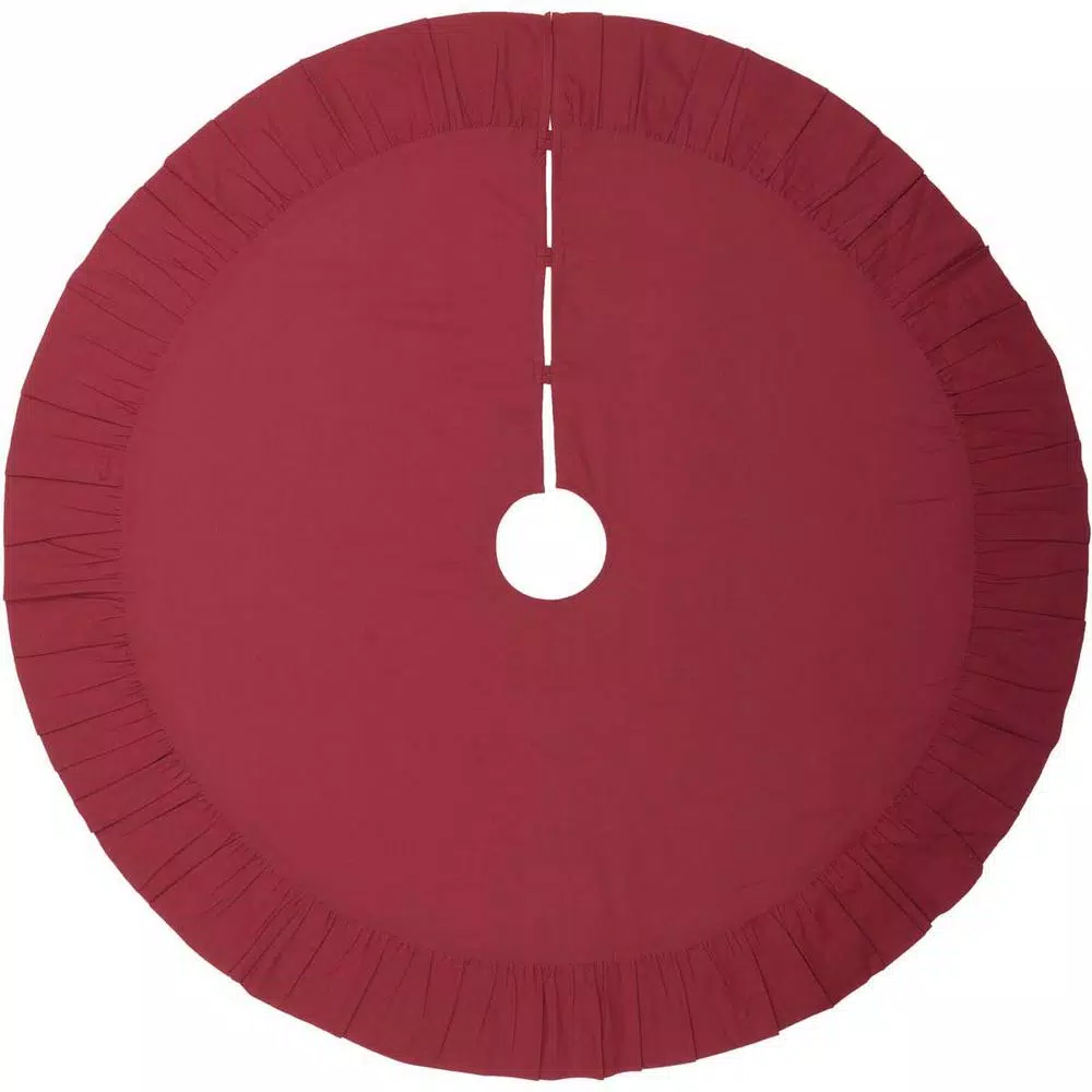- Opening trimmed with 0.5 in. solid deep red binding with 5 in. solid deep red gathered ruffle around outside