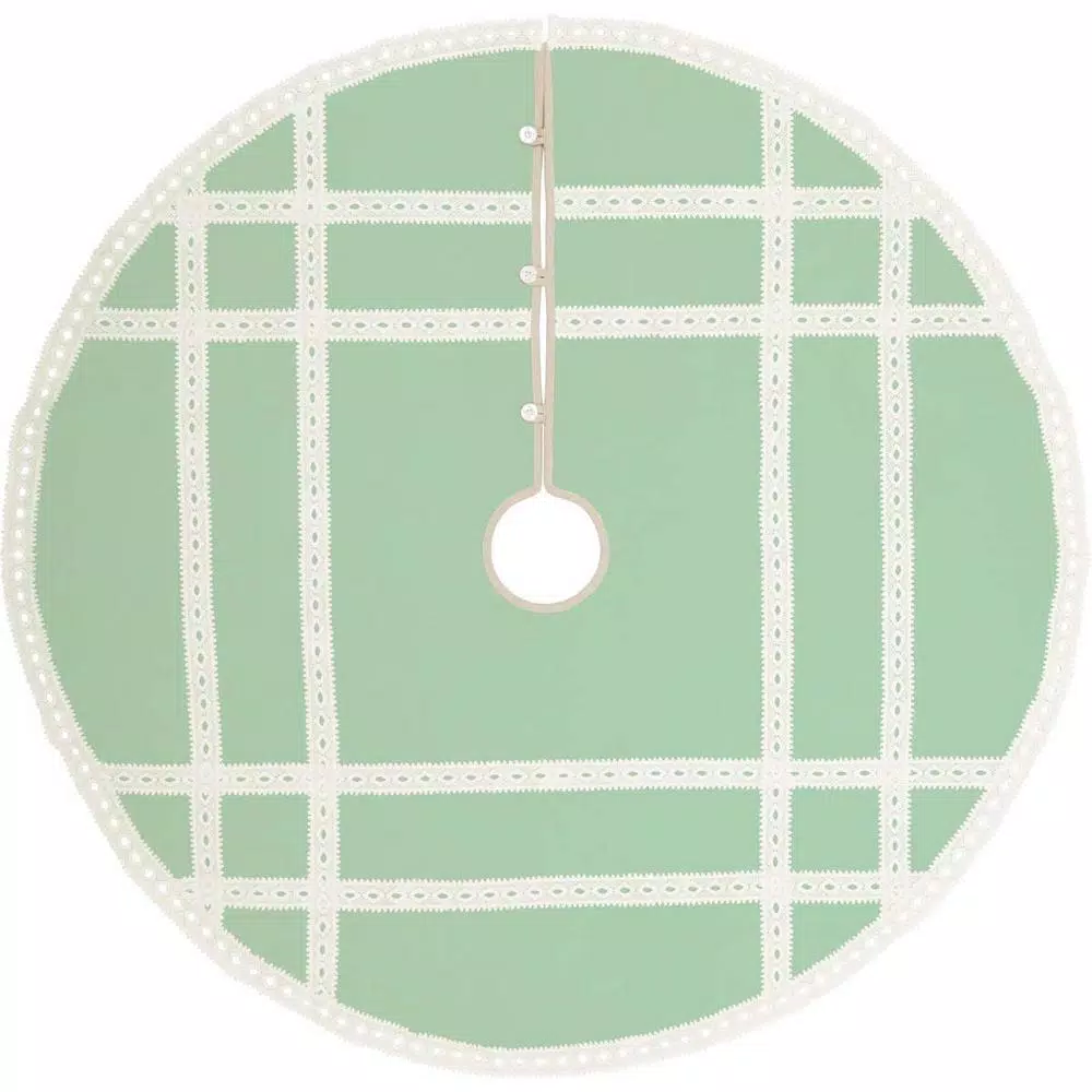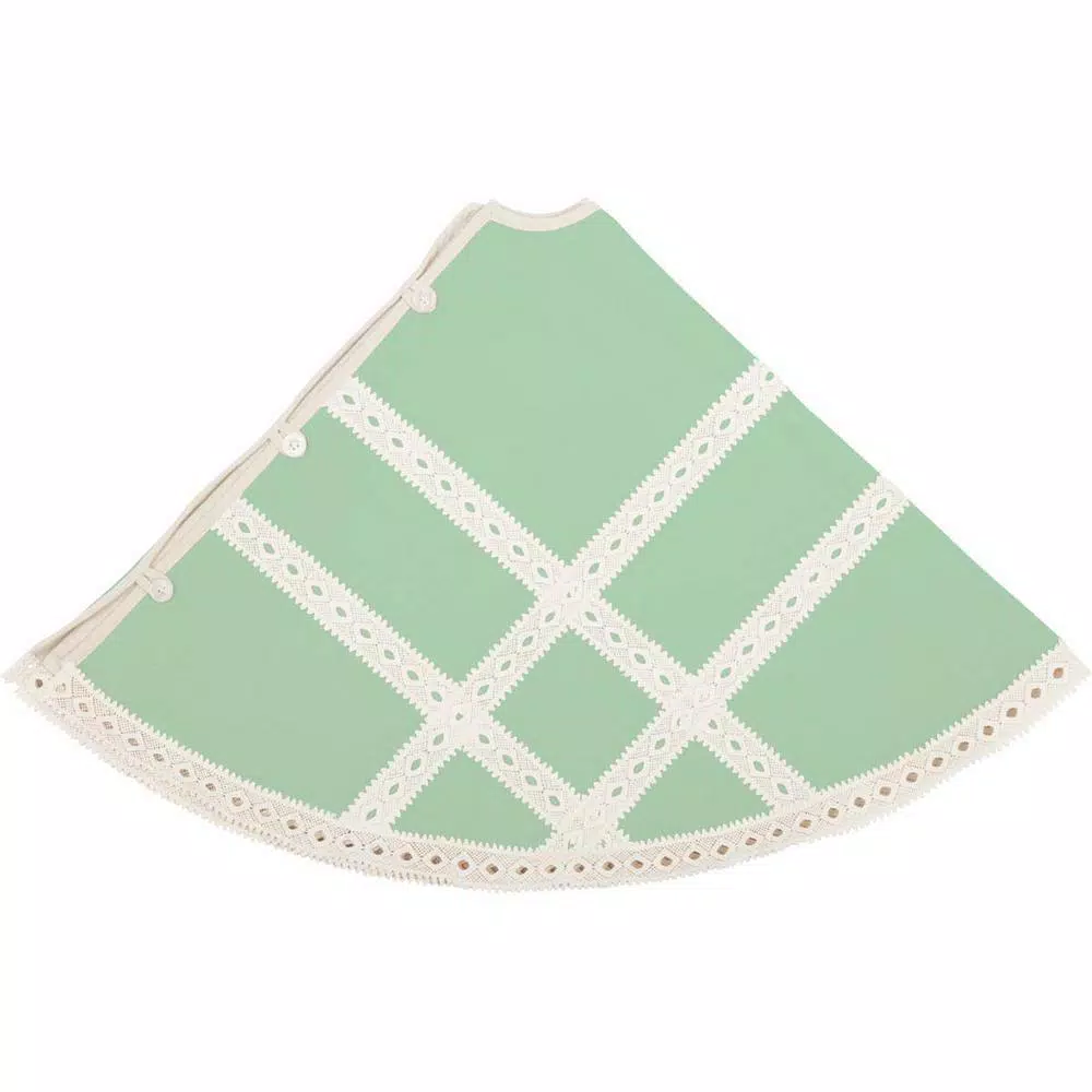 - Lace forms latticework over entire tree skirt