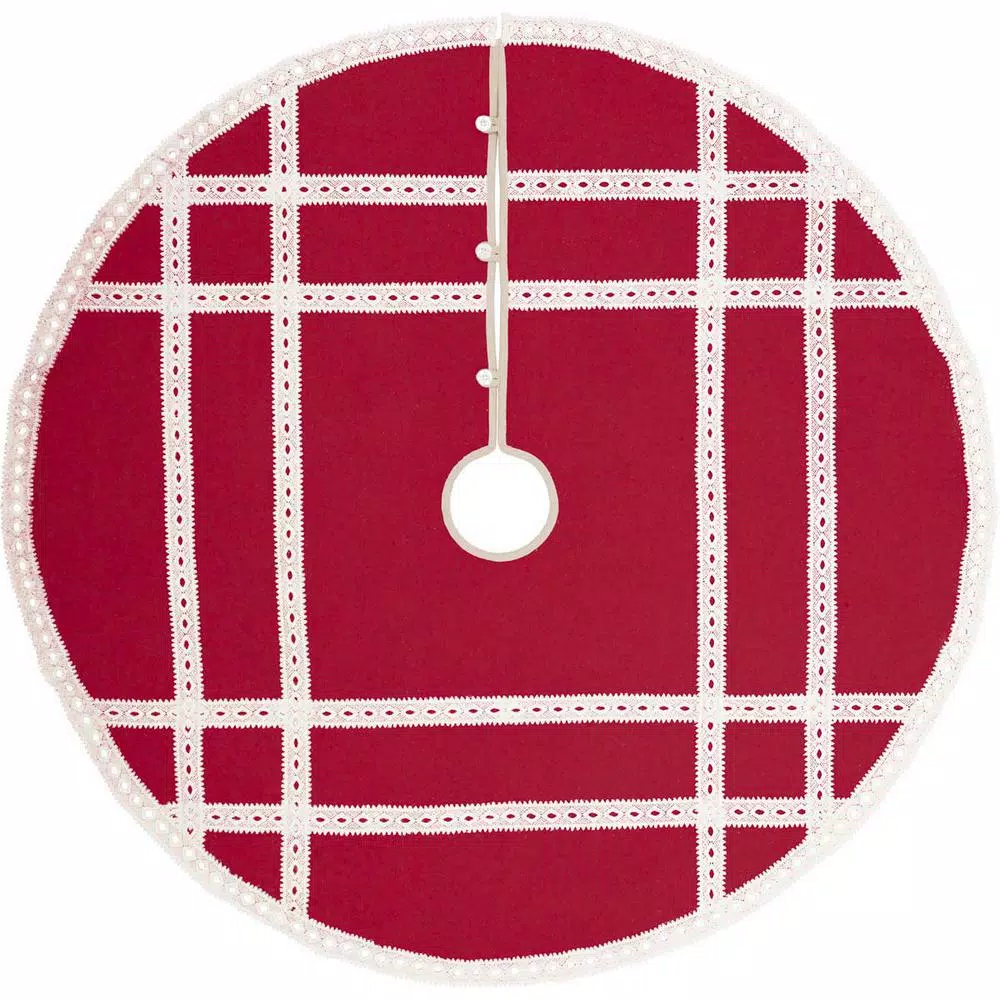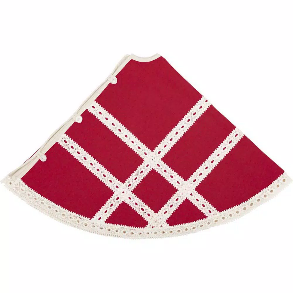 - Lace forms latticework over entire tree skirt