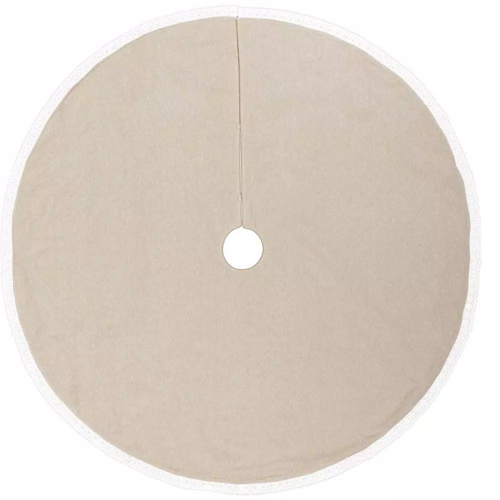 The Margot Tree Skirt is a statement of elegance for those who wish to pay homage to the timelessness of the Christmas Season. This tree skirt keeps the tradition of Christmas decor stored in grandmothers attic and taken out for only the most special occasions. An ornate diamond cut lace adorns soft felt in this enduring piece. Reverses to creme chambray. Made with cotton and felt for a luxurious and soft feel.