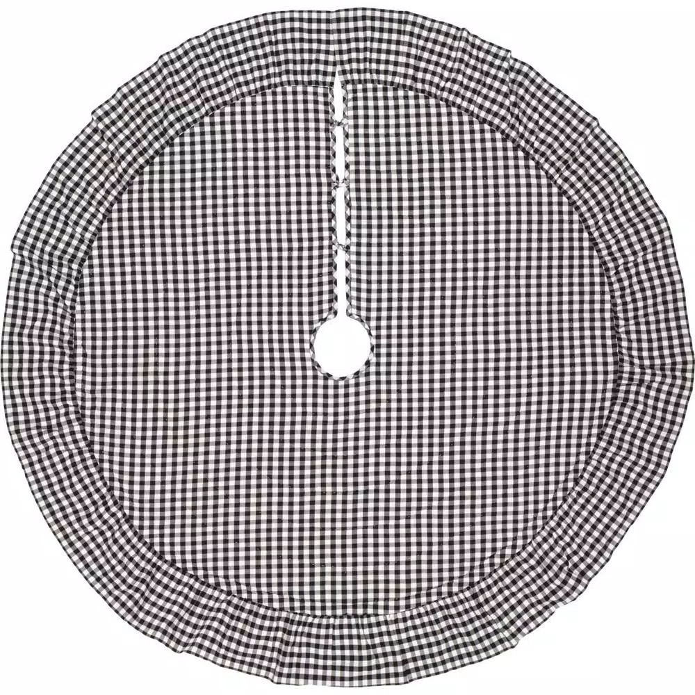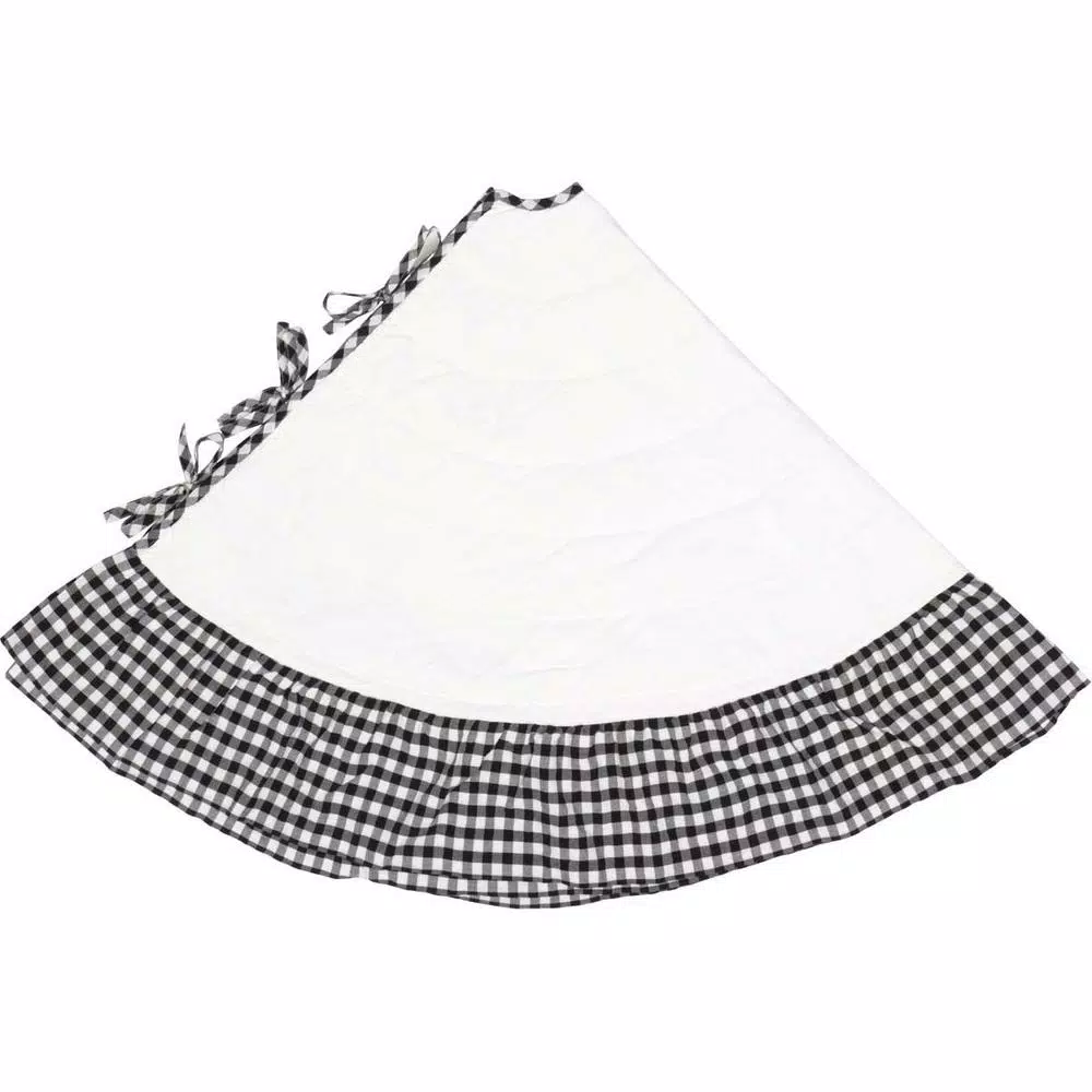 - Trimmed with 7 in. black and white check gathered ruffle