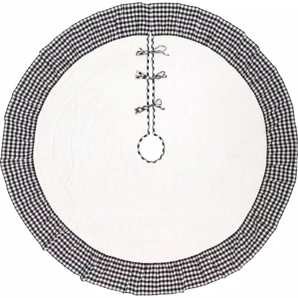 Countrify your Christmas this year with the Emmie Ruffled Tree Skirt. A bright white cotton base is hand-quilted, then trimmed with ruffles. Reverses to the check found on the ruffles. 100% cotton.