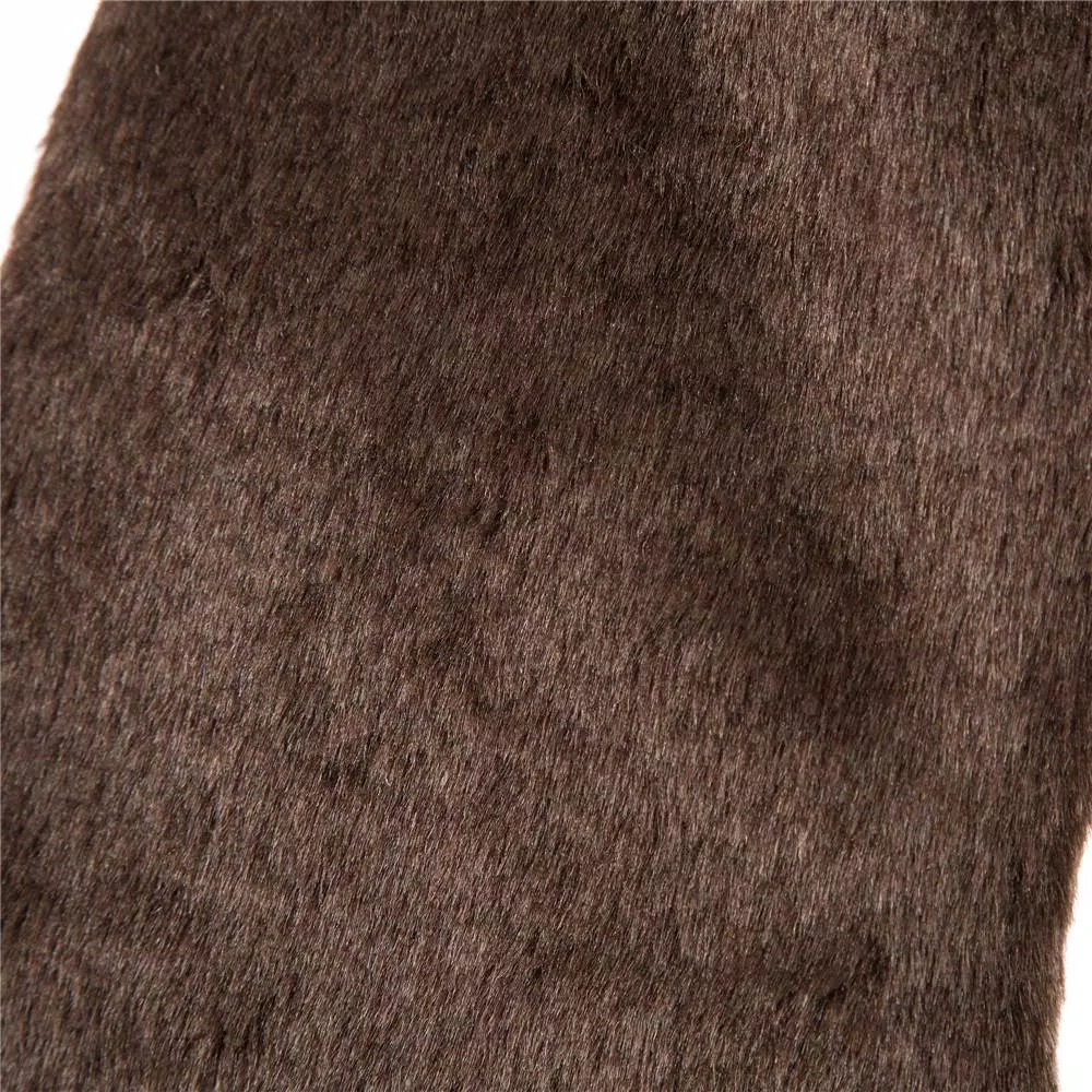 This plush Christmas stocking creates a soft and inviting atmosphere wherever you hang this Christmas decor during the holiday season. Made from soft brown plush. This stocking is accented with a plaid cuff colored in the traditional Christmas colors of red, green and brown.