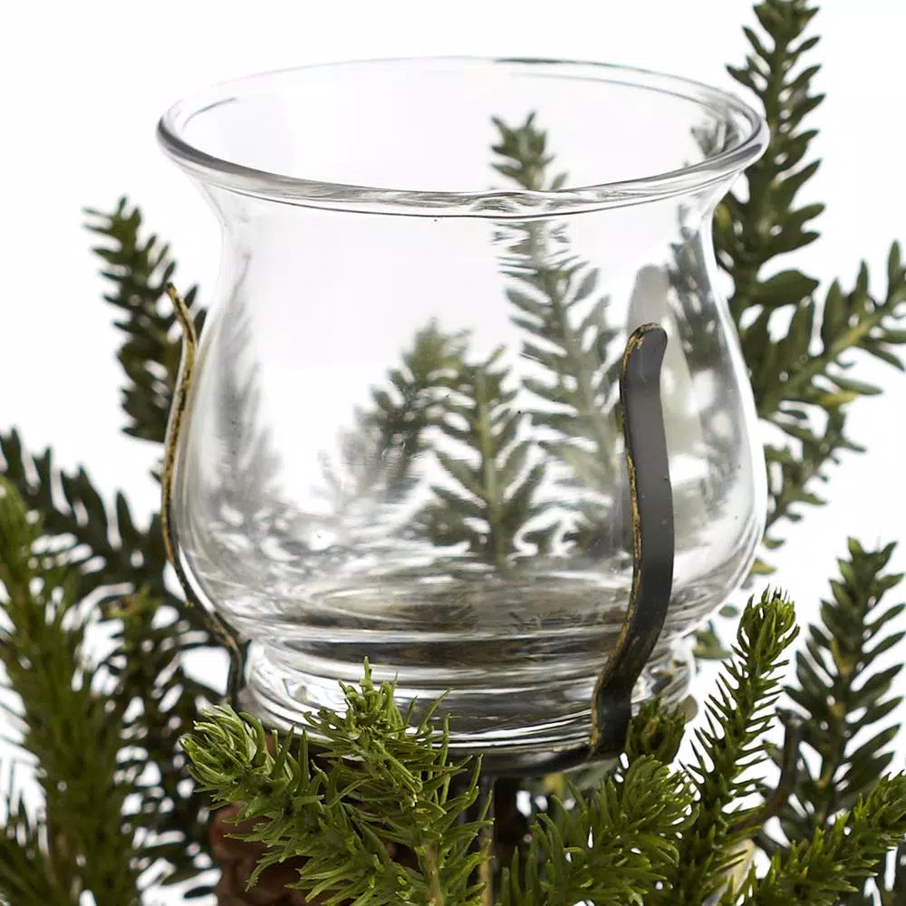 Here’s an exceptional take on the traditional candelabrum centerpiece – a poinsettia and pine style design, with the candelabrum raised up high. The eclectic mix of holiday colors and textures are many, from sprigs, berries and blooms, all surrounding a beautiful candelabrum with stand. Light up your holiday table or mantle with the stunning piece for years to come.