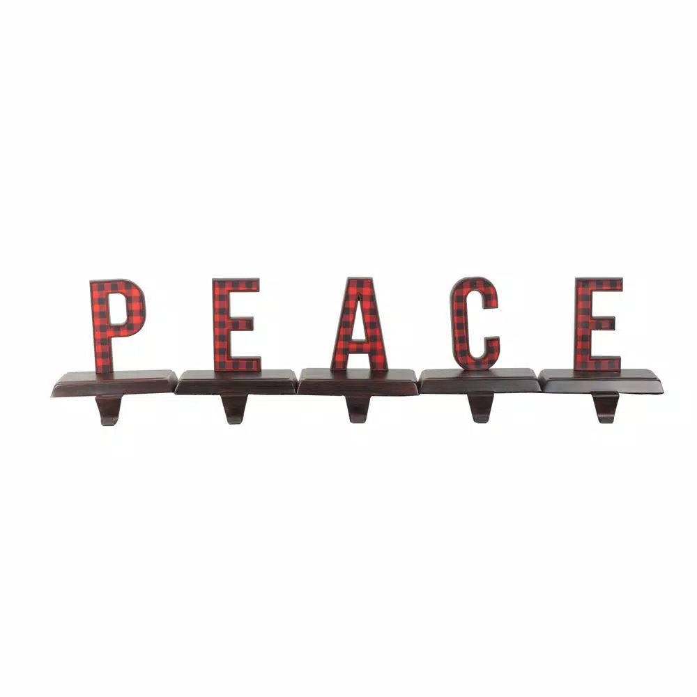 These stocking holders from the Country Tweed Collection are an elegant way for your stockings to be hung while adding a decorative touch to your mantel. These beautiful stocking holders rest easily on your mantel or any flat surface with and edge providing a decorative way to display your stocking. These plaid stocking holders will add a sense of sophistication with a splash of rustic flare to your Christmas decor this holiday season. Product Features: Each stocking holder features itβs own letter in red and black buffalo plaid 1-sided design Holder features a weighted bottom for added stability Dimensions: 6 in. H x 5 in. W x 4.5 in. D Material(s): metal.