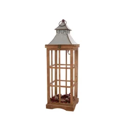 Indoor Christmas Decorations Glitzhome Brown Christmas Farmhouse Wood/Metal Lanterns (Set Of 2)