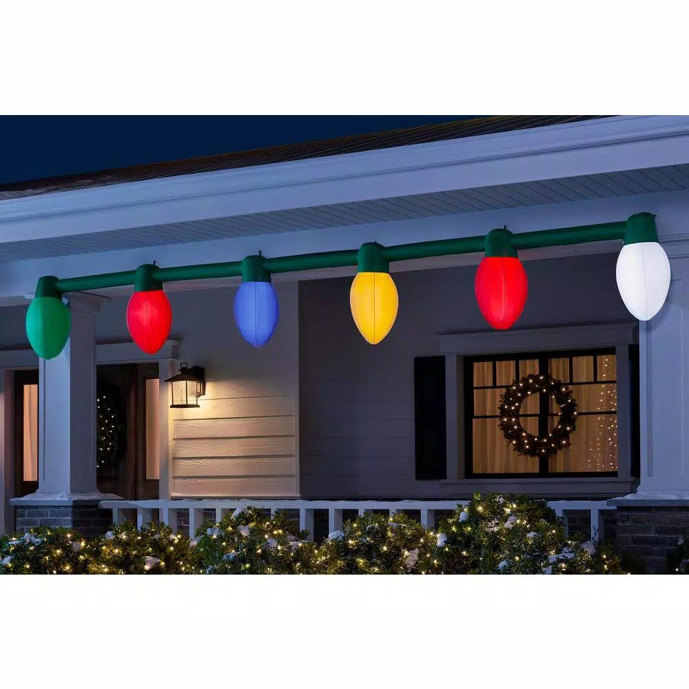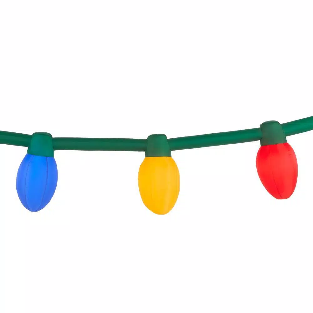 Bring holiday happiness to passersby with this Airblown Inflatable Light String. Featuring six colorful bulbs, this adorable decoration is perfect for sharing Christmas cheer. Use it as a standalone piece or group it with other inflatables for a supersized scene. Setup is easy – just plug it in, stake it down and enjoy the fun. Includes everything needed for outdoor setup.