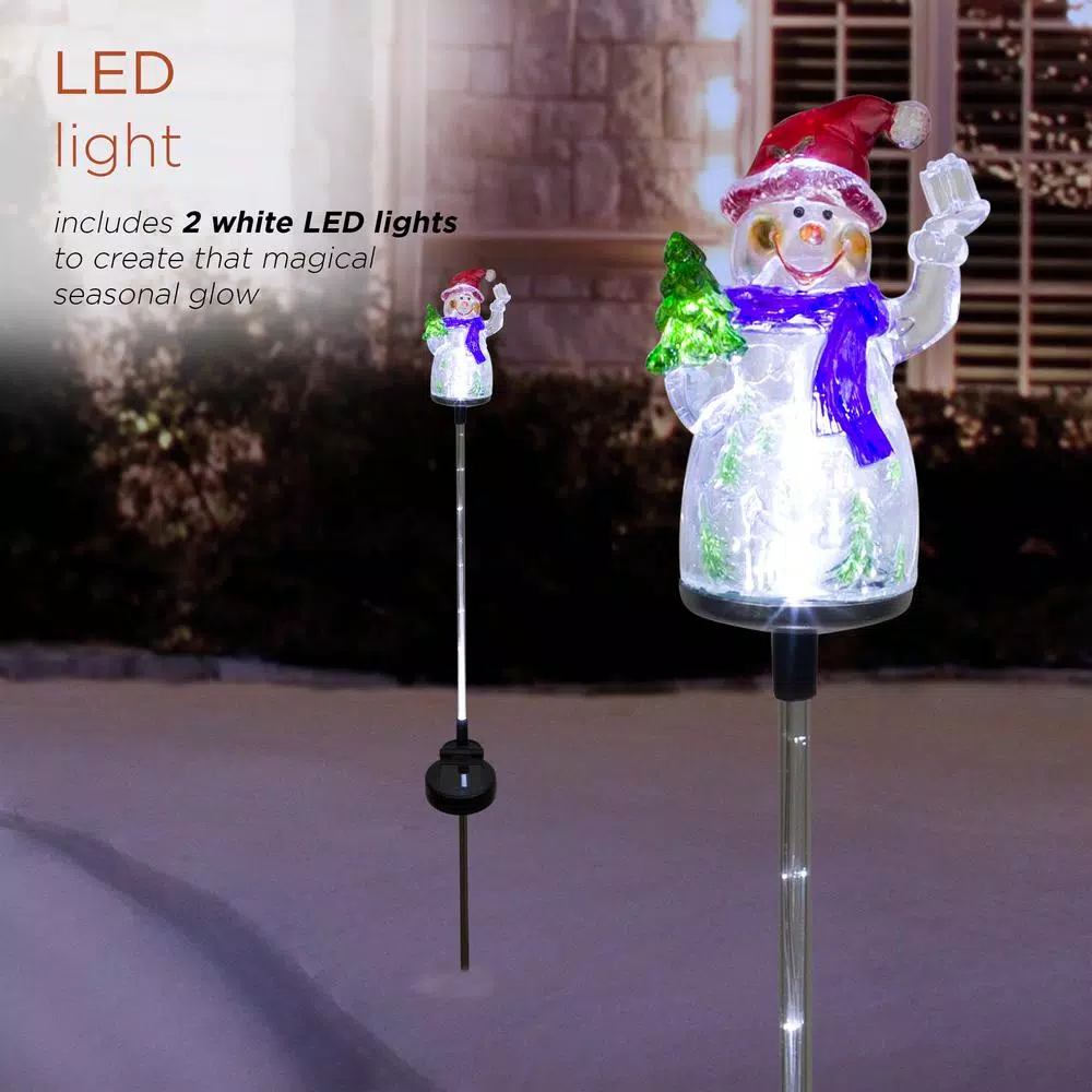 - IDEAL SIZE: Solar Snowman Garden Stake measures 3″L x 2″W x 34″H, perfect for your outdoor space