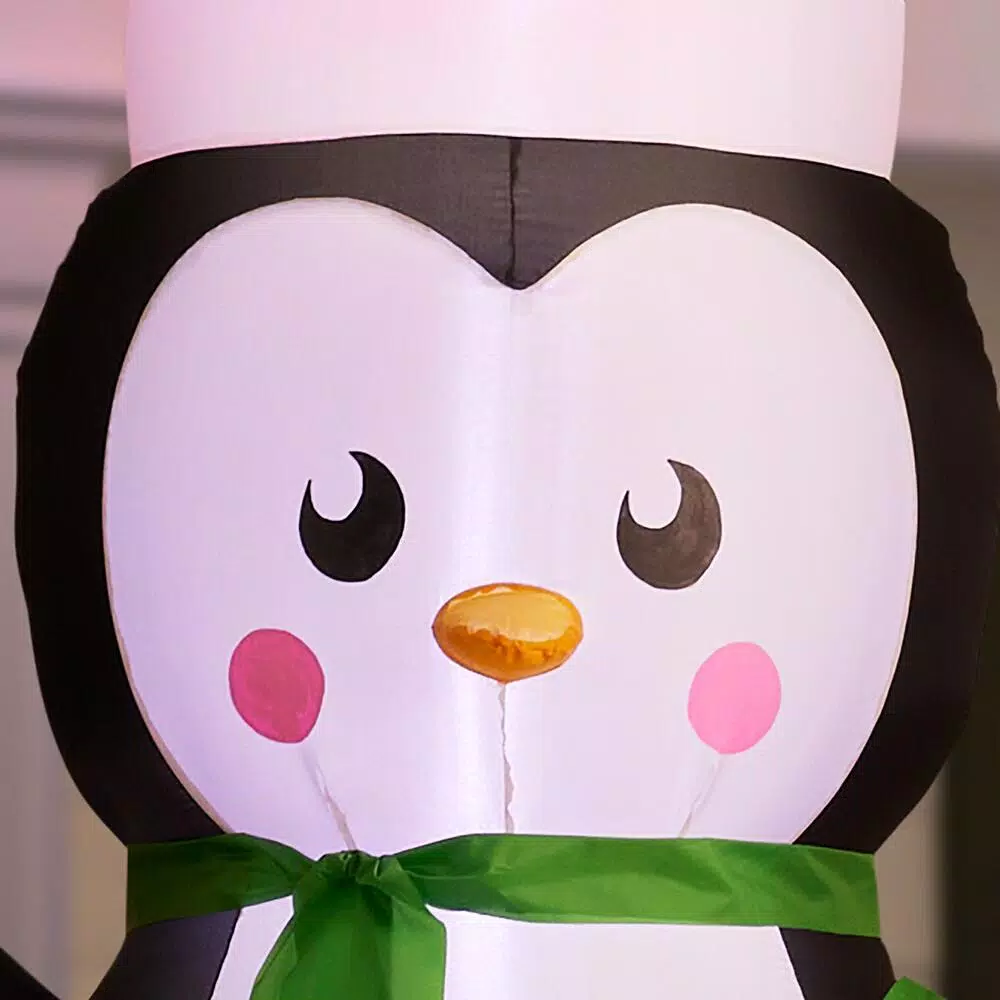 Deck the yard with an Airblown Inflatable penguin. This whimsical Christmas inflatable features a stylish penguin in a sky high Santa hat and green scarf. Setup is super simple. Just plug it in, stake it down and watch the magic unfold. Display this whimsical holiday decoration as a standalone or combine it with other Airblown characters to create a custom scene. Includes everything needed for easy outdoor setup.