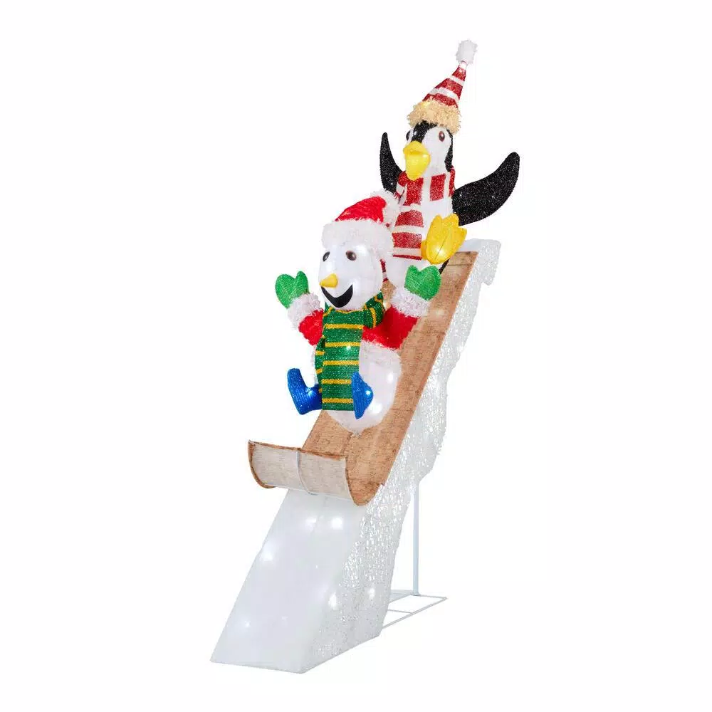 Add an adorable touch to your holiday decor with this Sledding Penguin and Snowman Yard Sculpture from Home Accents Holiday. Wrapped in durable LED lights, the energy-efficient bulbs glow brightly and save money versus traditional bulbs. The weather-resistant fabric and durable metal frame ensures this decoration will delight visitors for seasons to come. This festive display is easy to assemble and rated for indoor and outdoor use.