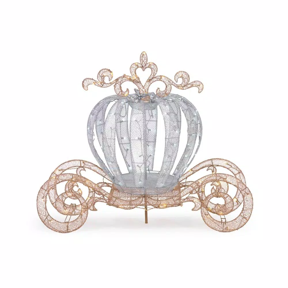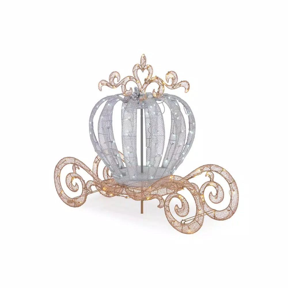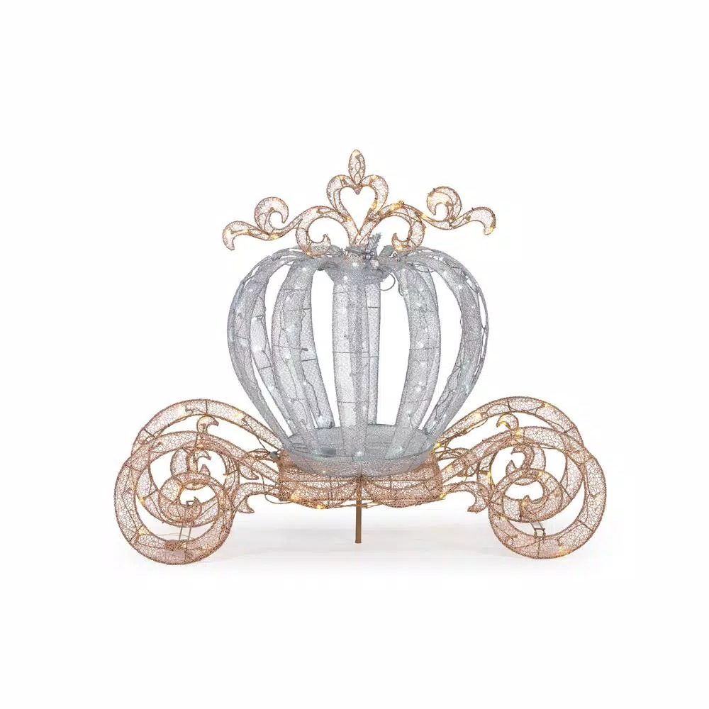 Create a majestic fairytale scene this holiday season with this 4 ft. LED Lighted Twinkling Carriage. Unlike Cinderella’s carriage, this beauty won’t turn back into a pumpkin at midnight. The sparkling display glows brightly, outfitted with 180 LED lights to illuminate your yard with a cheerful holiday glow. For easy assembly, metal stakes are included.