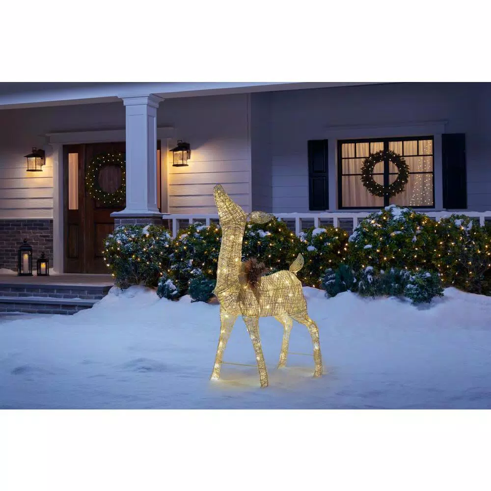 Add an adorable touch to your holiday decor with this Deer and Collar from Home Accents Holiday. Wrapped in warm white LED lights, the energy-efficient bulbs save money versus traditional bulbs. The weather-resistant fabric and durable metal frame ensures it will delight visitors for seasons to come. This decoration is easy to assemble and rated for indoor and outdoor use.