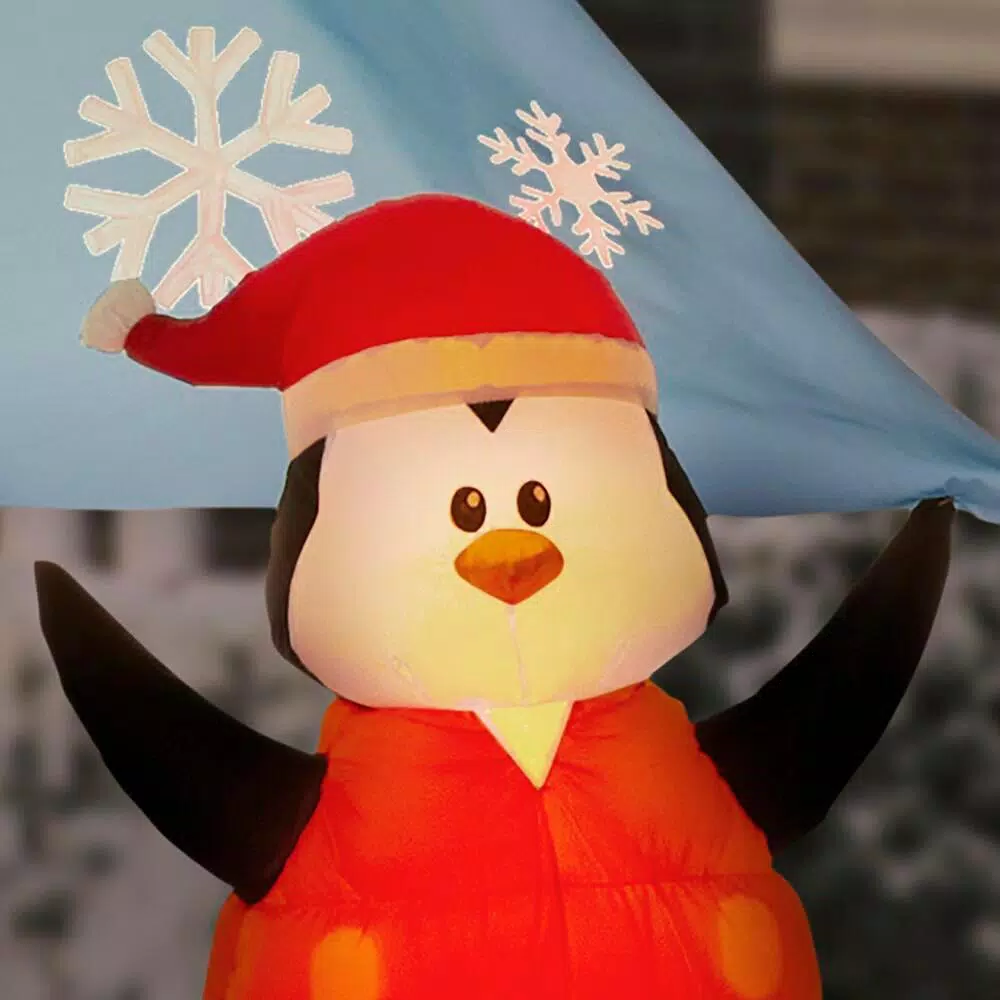 Set sail for a happy holiday with this Airblown Inflatable Christmas Sailboat. Santa and his adorable first mate penguin are decked out for the season. Use it as a standalone piece or group it with other inflatables for a supersized scene. Setup is easy – just plug it in, stake it down and enjoy the fun. Includes everything needed for outdoor setup.