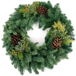 Christmas Greenery VAN ZYVERDEN 24 In. Live Fresh Cut Pacific Northwest Countryside Christmas Wreath