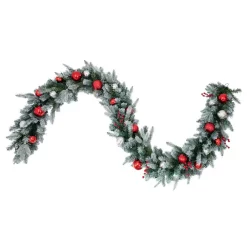 Christmas Greenery Haute Decor 9 Ft. Pre-Lit LED Artificial Frosted Garland With Ornaments